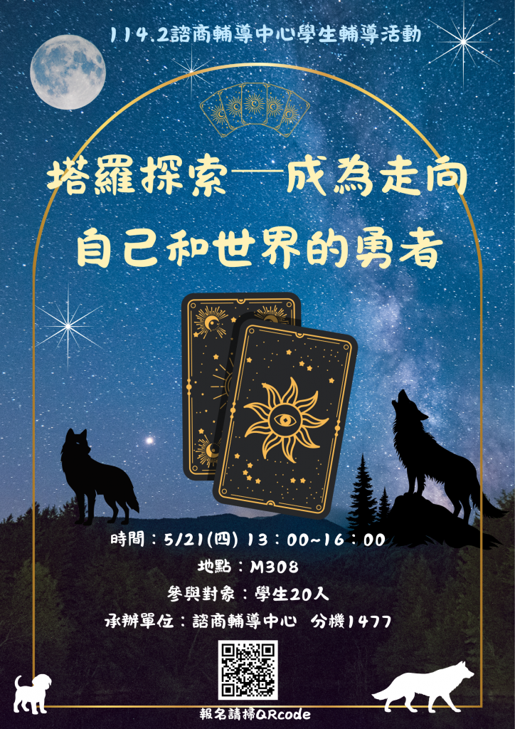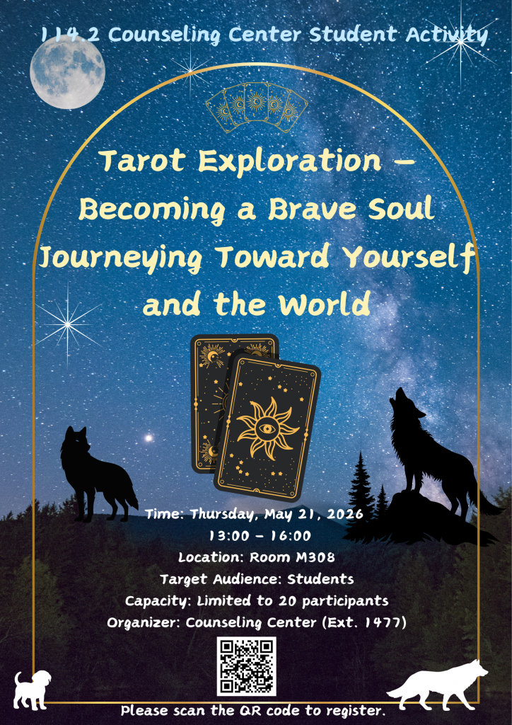 【諮輔中心學生活動】5.21(四)「塔羅探索─成為走向自己和世界的勇者」工作坊開放報名 [Counseling Center Student Activity] Workshop Registration Now Open: “Tarot Exploration — Becoming a Brave Soul Journeying Toward Yourself and the World”
